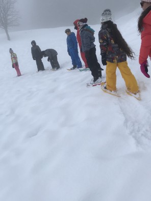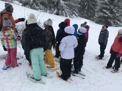 Nous avons suivi les traces d’un écureuil et découvert les différents arbres que l’on trouve en altitude. Le guide était très gentil !Vanessa et Karim sont venus nous voir. Quelle belle surprise ! Ils ont fait la balade en raquettes avec nous.