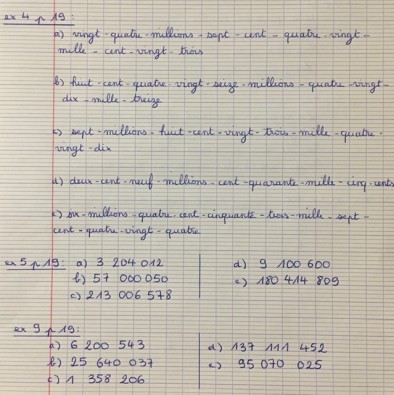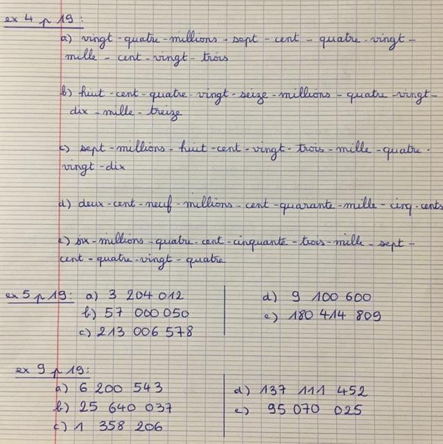 - Numération: Les millions Ex 6 p.19 + Ex 10 p.19 + Ex 11 p.19