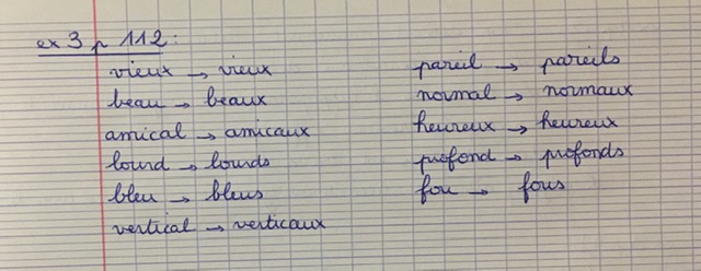 - Orthographe: Pluriel des noms et des adjectifs: Lire "Règle" p.188 à connaître par coeur + Ex 4 p.112 + Ex 5 p.112 + Ex 6 p.112