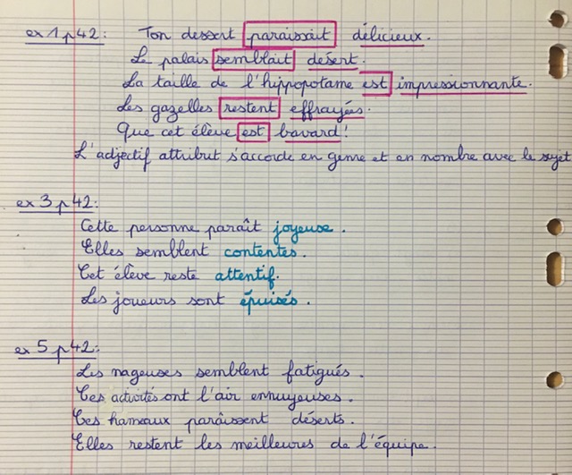 - Grammaire: L'attribut du sujet: Ex 7 p.42 + Ex 8 p.42 + Ex 9 p.42