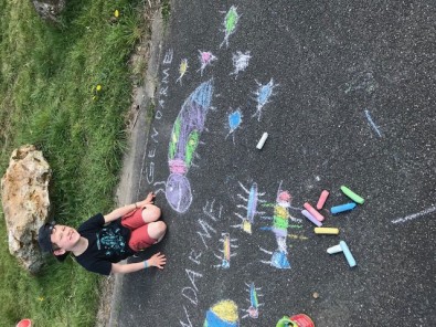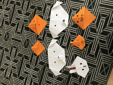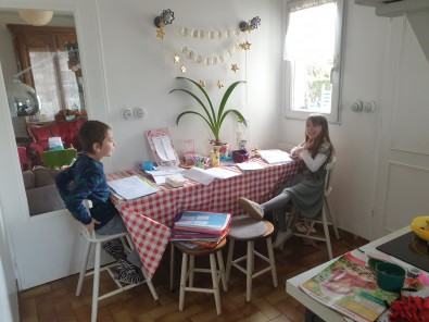 - Voici quelques photos: Jérémy et sa soeur quand ils font classe à la maison et les origamis de Constance.