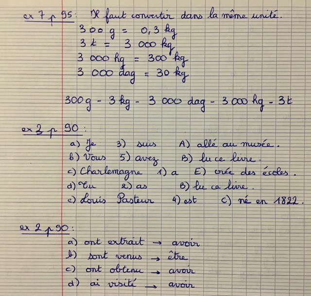 15 eme jour: classe à la maison - Jeudi 23 avril - Correction