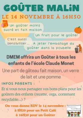 Vendredi 14 novembre, l'association DMEM offre le gouter à tous les enfants de l'école.