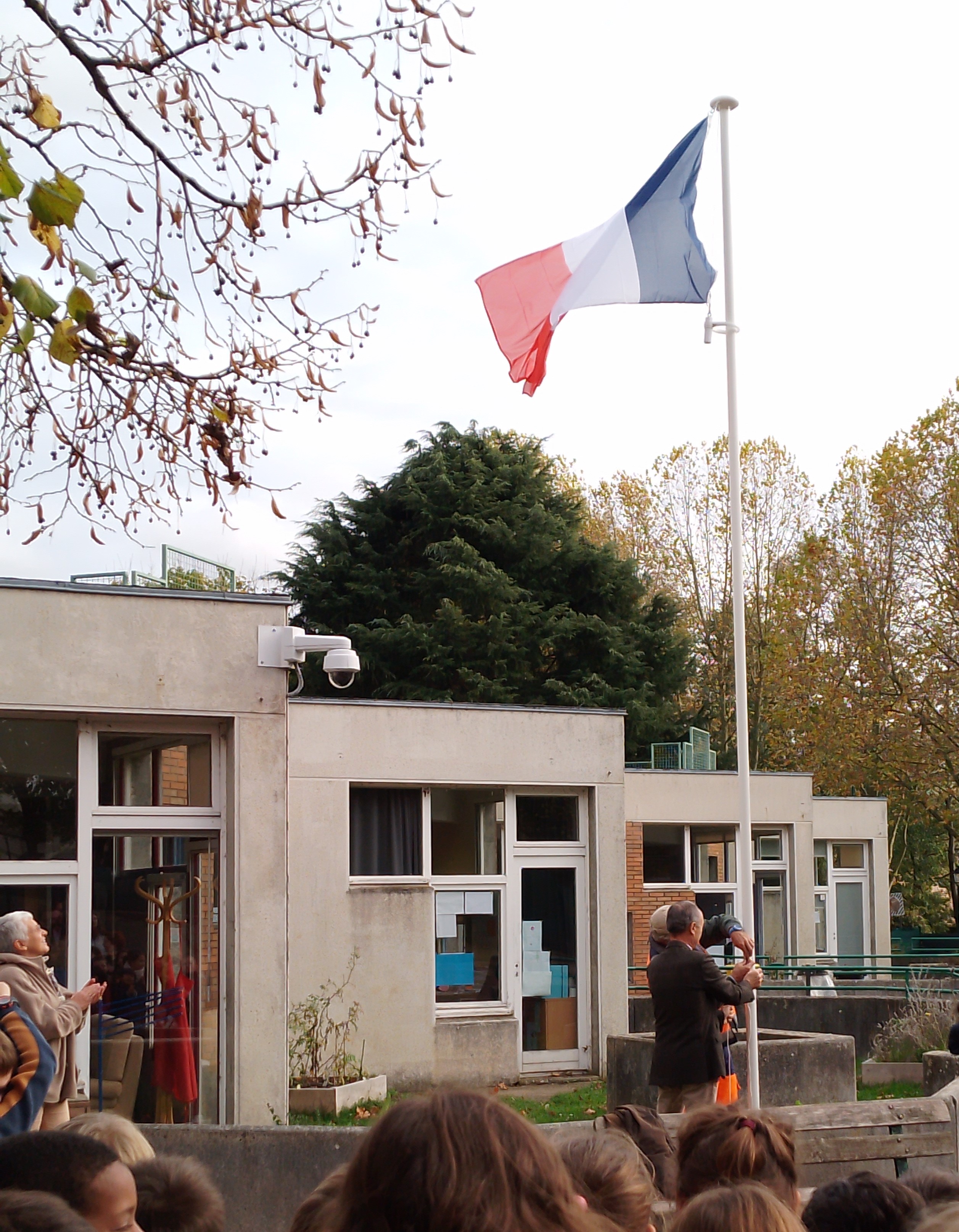 En présence de représentants de la mairie de Noisy le Roi et après un petit discours, les enfants ont vu le drapeau tricolore s'élever sur son mât. Puis les élèves ont entonné tous ensemble la Marseillaise.
