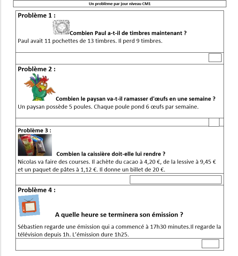 Calcul mental : un problème par jour (exercices et corrections en pièces jointes)