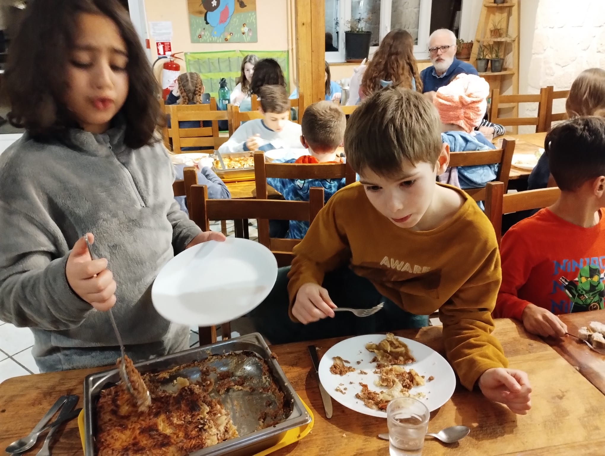 Pour finir, après les douches repas puis veillée loup garou et chants