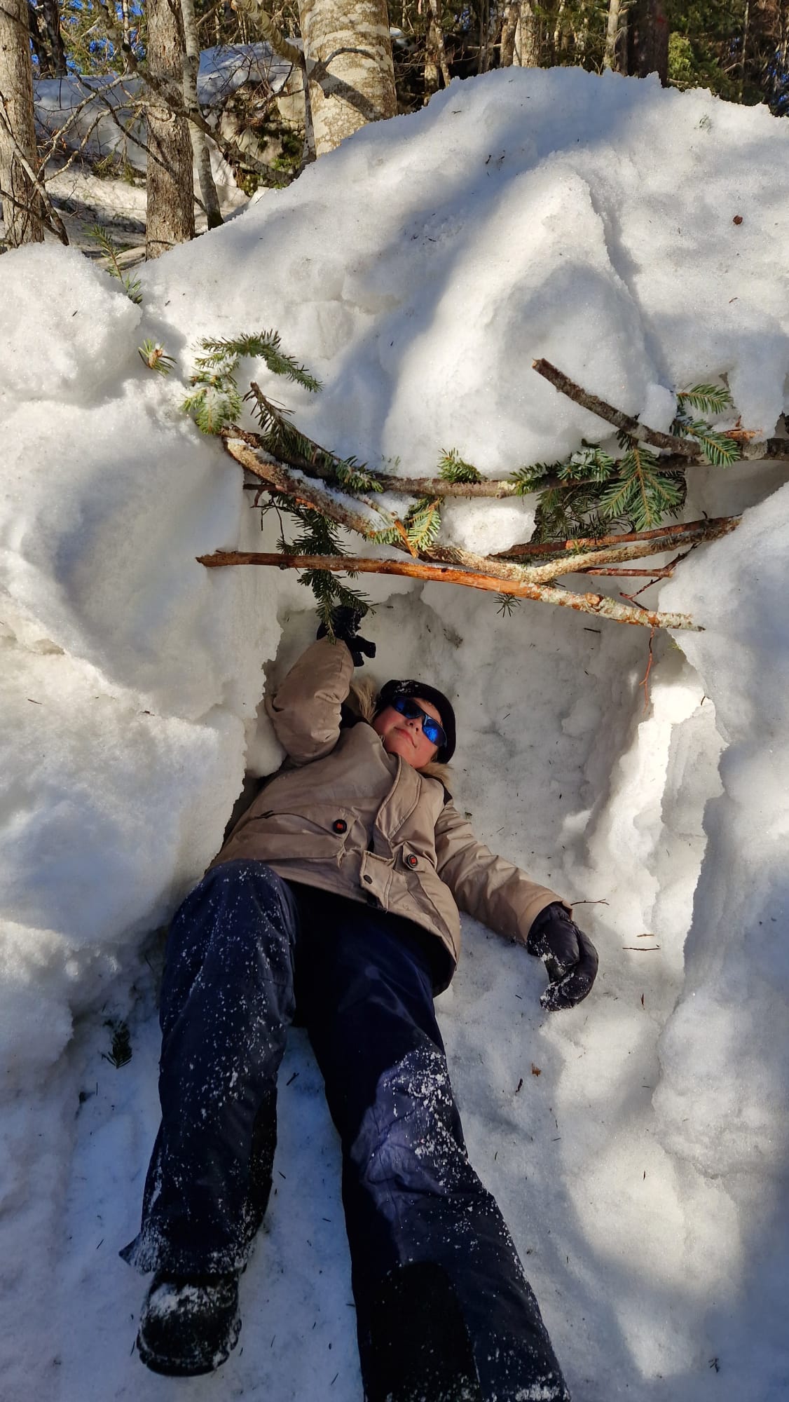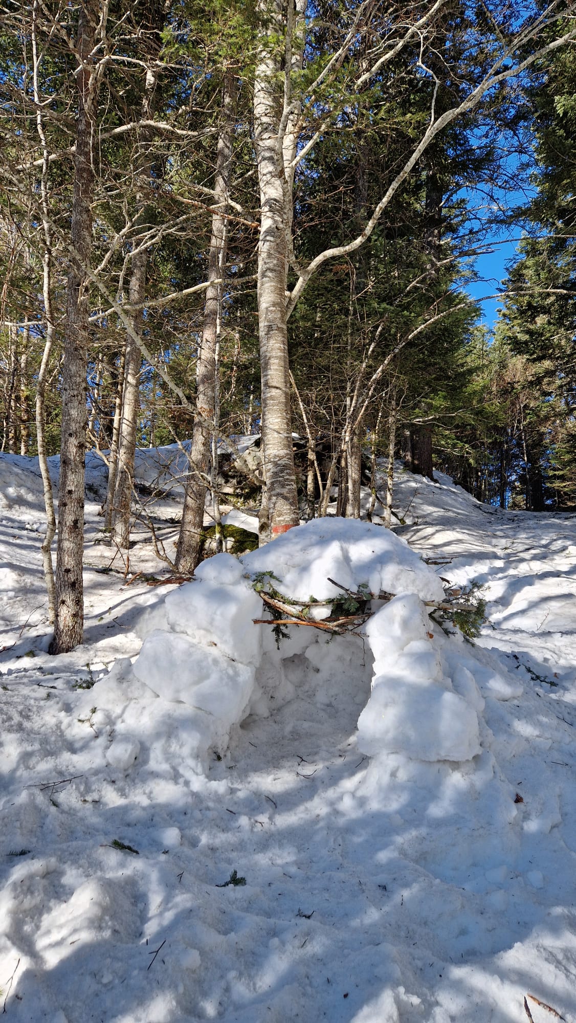 Igloo du matin, la neige était glacée... et mise en situation avec les chiens...