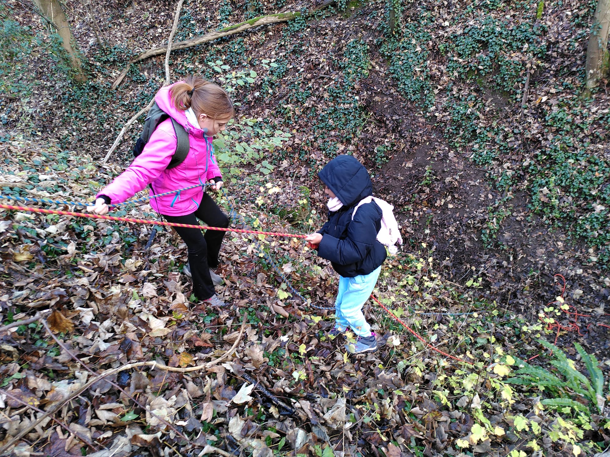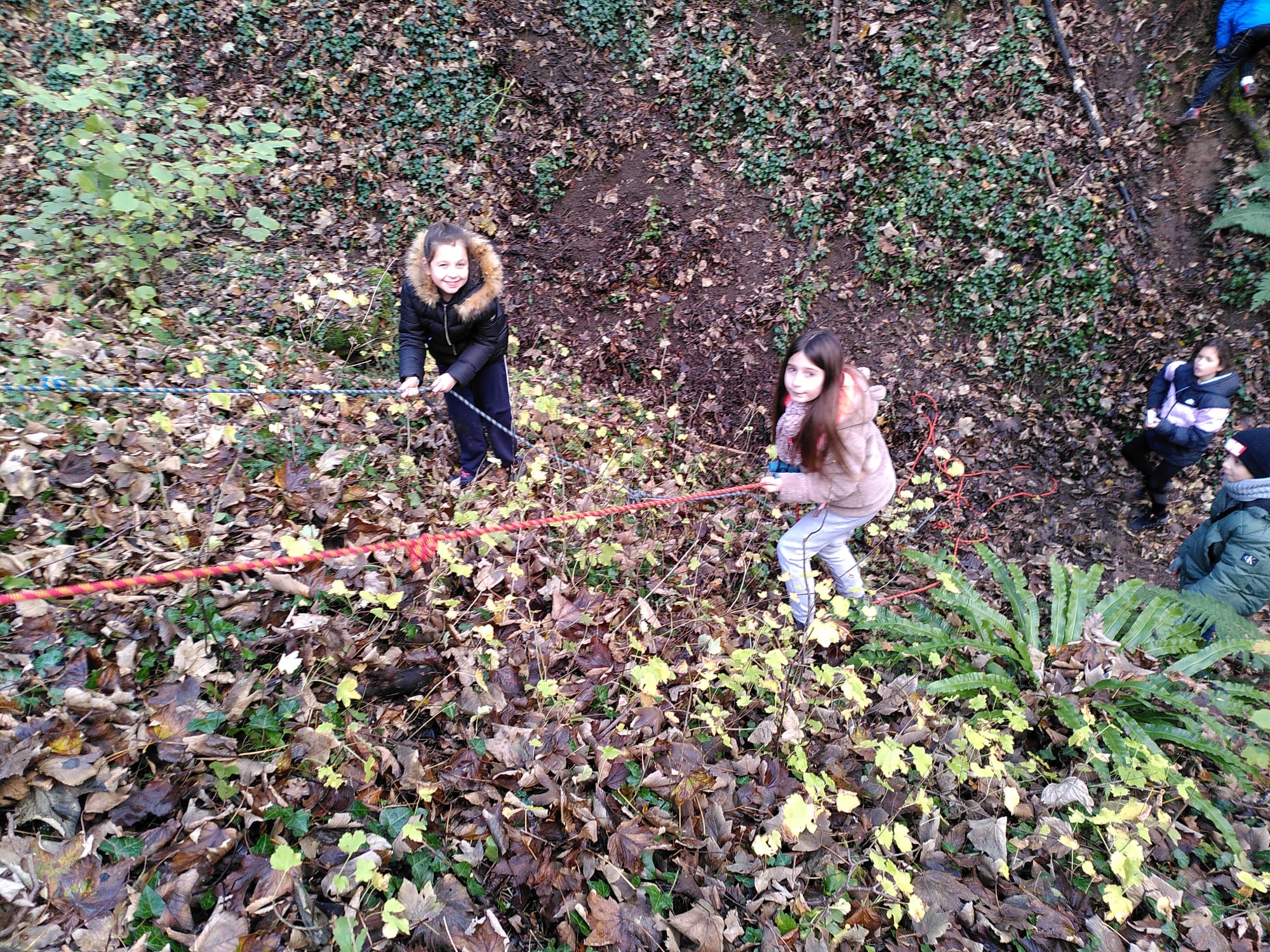 Certains se sont mis à pleurer découvrant l'exercice difficile (non obligatoire) mais en observant les premiers, ils ont su maitriser leur peur et descendre rejoindre les autres.