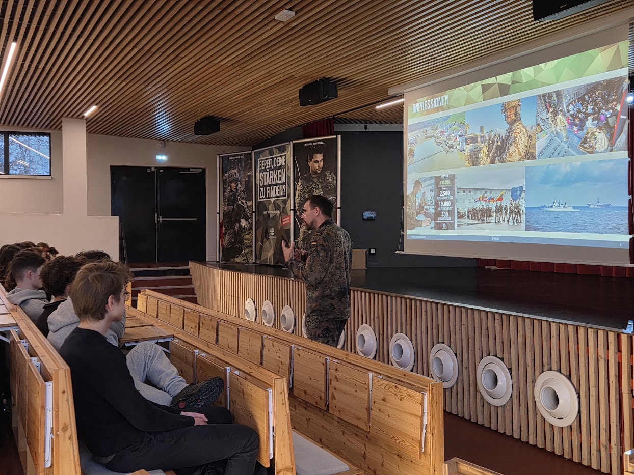 - Freitag, 28.11.2025, 9:00-10:30 Uhr Vortrag zu Karrierechancen bei der Deutschen Bundeswehr für 3D, 2DE1, 2DE2, 1AF und TES/TL (AF)