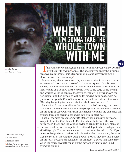 Read & listen to the text below, then do the exercises (annexe 3 attached at the bottom of the page : CE "The priestess's curse")