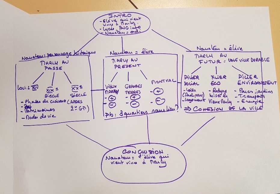 Voici le schéma possible à ce stade du travail de notre narration.